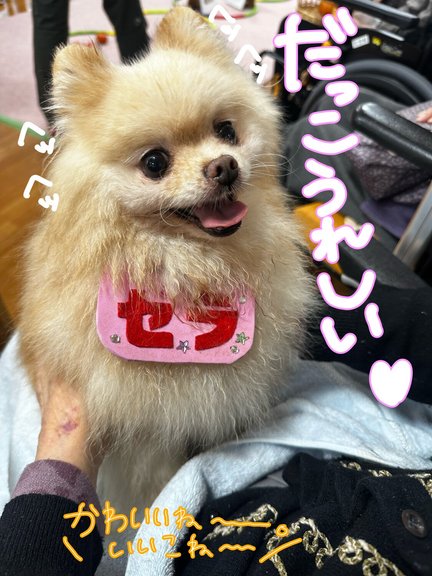 お膝の上にちょこんとすわってご入居者様をメロメロにしてました。