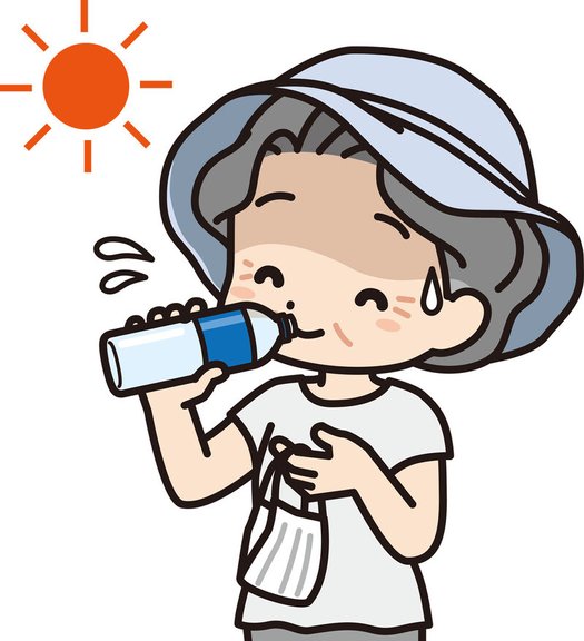 喉が渇いていなくても定期的(1時間に1回)に水分補給をしてください。これは外出時に限らず、室内にいても同様です。