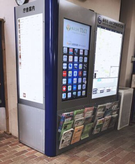 調布駅市役所の総合窓口付近にデジタル広告付きの庁舎案内板が設置されました。