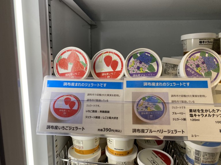 アイスは2種類「調布産いちごジェラード」と「調布産 ブルーベリージェラード」
