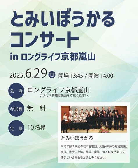 「平均年齢70歳の混声合唱団とみいぼうかるコンサート」をご案内いたします。