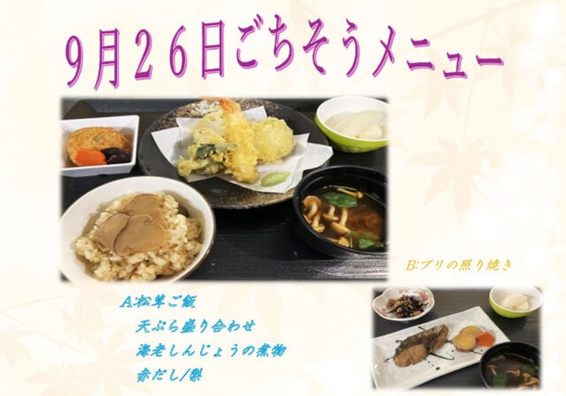 【おしらせ】☆ごちそうメニュー 9月26日☆