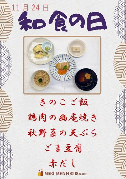 11月24日は和食の日ということで「きのこご飯」が振舞われます(・´з`・)