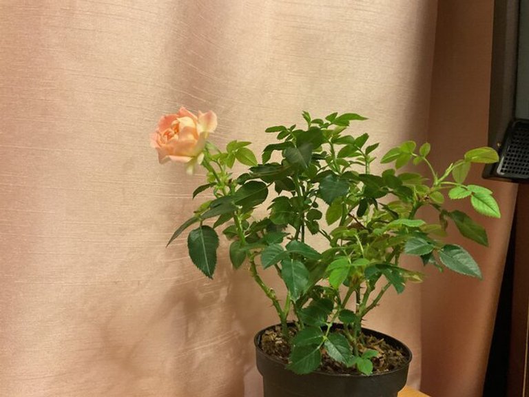 なんとこの薔薇は家族様が面会に来られた時に持って来られた花束の中にあった蕾の無い枝の状態から、大事に丁寧に水やりや日光を当て遂に先日咲いたんだと凄く嬉しそうに話して下さいました。(*´▽`*)