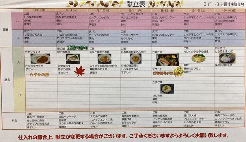 今回は「9/8~9/14までのメニュー紹介」です。