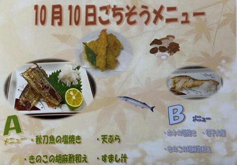 「秋刀魚の塩焼き・天ぷら・きのこの胡麻酢和え」
