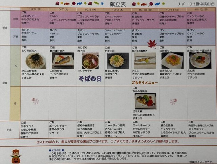今回は「10/6~10/12までのメニュー紹介」です♬