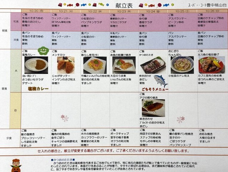 今回は「10/20~10/26までのメニュー紹介」です(^_-)-☆