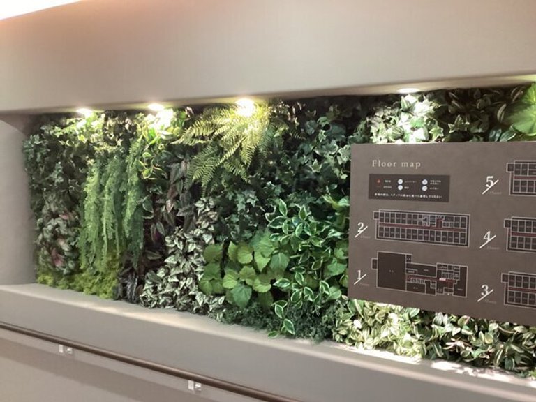 玄関入ってすぐ正面に模造ですが植物の装飾が施されています