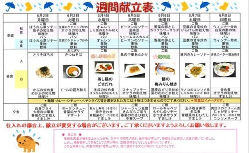 6/2~6/8のメニュー表のお知らせです(*´ω`*)
