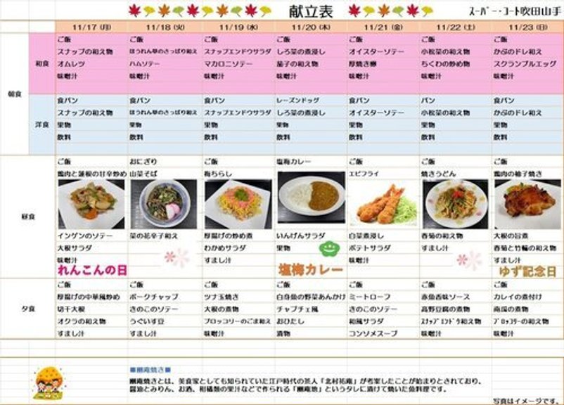 11月17日から11月23日の献立のお知らせです(^_-)-☆
