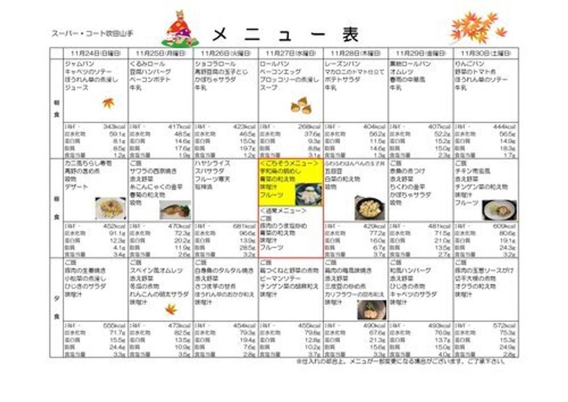 11月24日~11月30日の献立のお知らせです(*^▽^*)
