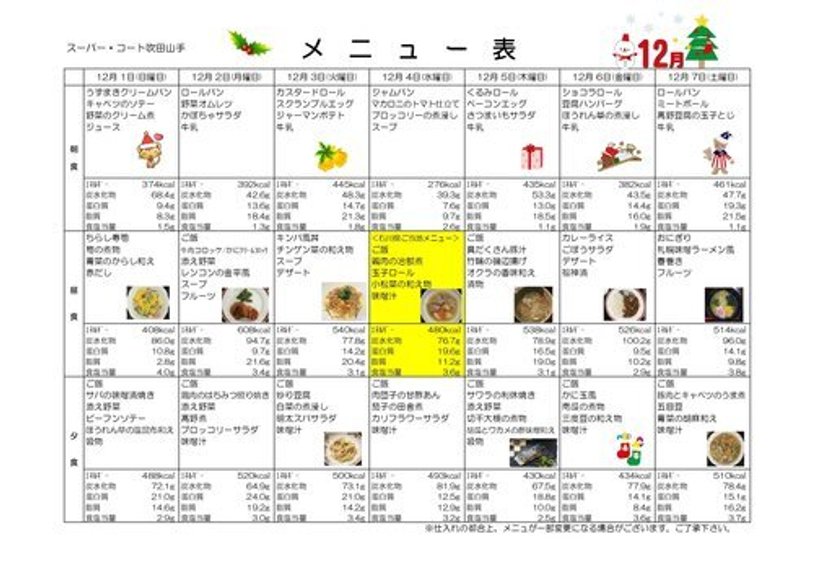 12月1日~12月7日の献立のお知らせです(*^▽^*)