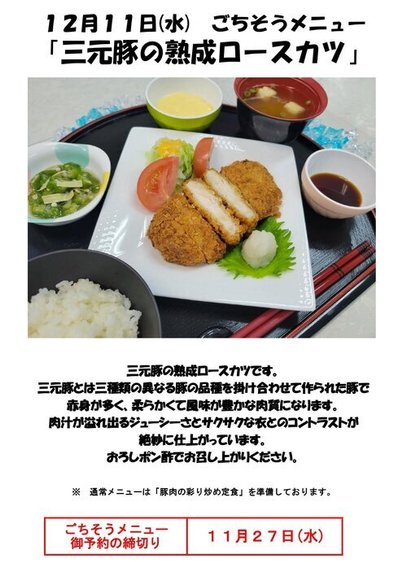 12月11日のごちそうメニューのお知らせです(*'ω'*)