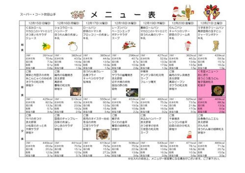 12月15日~12月21日の献立のお知らせです(*'▽')