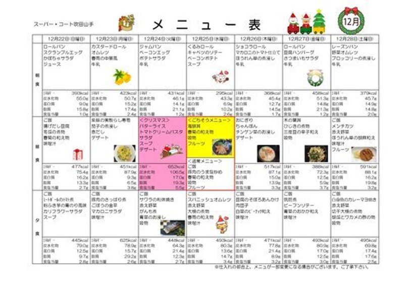12月22日~12月28日の献立のお知らせです( *´艸`)