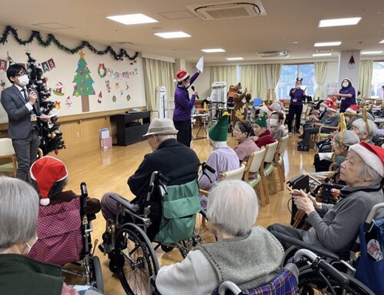 まず始めに、男性職員と施設長2人で童謡曲『虹』を歌っていただきました♪