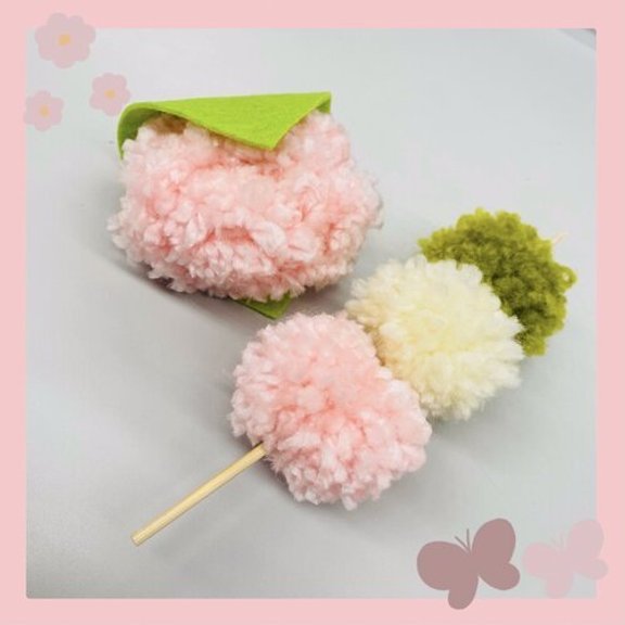 今回は毛糸を使って『三色団子』と『桜餅』の2種類から、