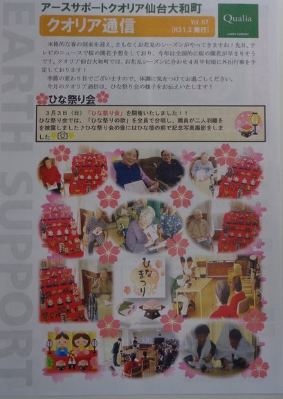 毎月、ご入居者様、ご家族様宛てに「クオリア通信」を発行しております。