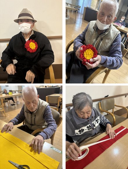 しました。最初はお花の壁飾り作りでしたが洋服に付けたいと言って頂きピンを付けブローチにしました。