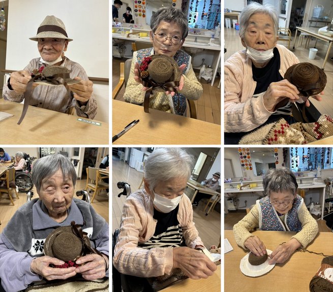 本日を毛糸を使い帽子の壁飾り作りをしました。