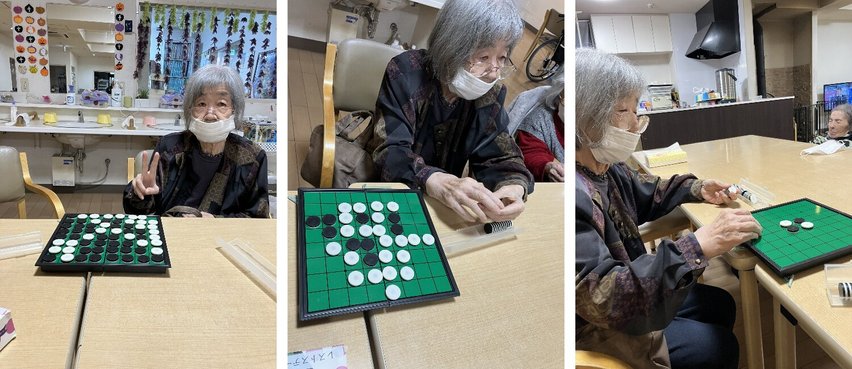 「良い頭の運動になるわ。」とあーでもない、こーでもないとお互いに考えながらゲームを行いました。楽しそうに遊ぶことができてとても良い時間を過ごせました。