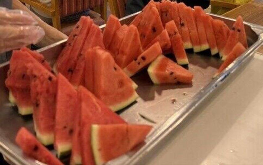スイカ割りの後は、別に用意した冷え冷えの甘いスイカを皆さまに味わっていただきました。