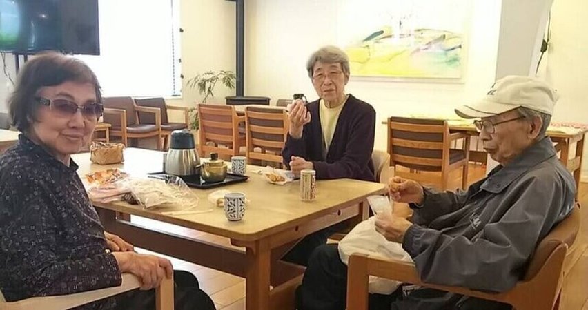 銀木犀ではおやつなどはご自分でご用意されたものを好きに食べてもらっていますので、お友達同士で分け合って楽しまれています。