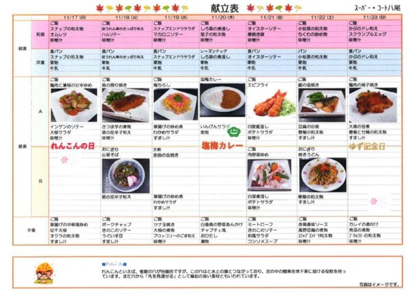 11/17~11/23の週間献立のご案内です。