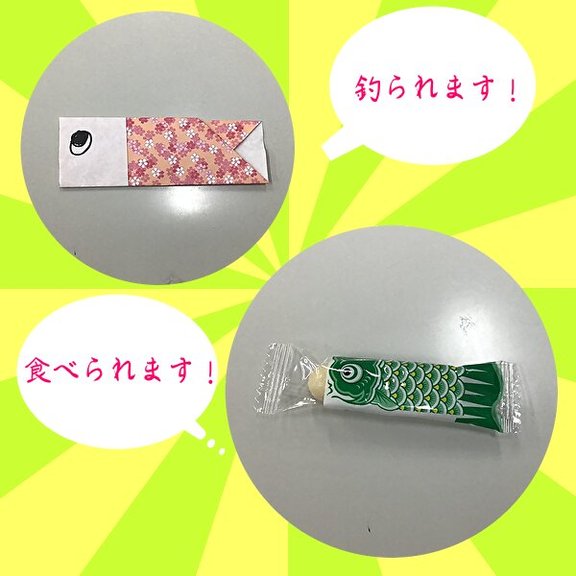 折り紙で作った鯉のぼりを皆様に釣って頂きます。
