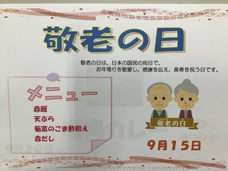 15日は敬老の日!!赤飯やてんぷらとなっております。