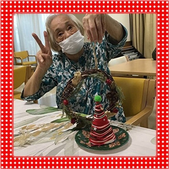 皆様とても可愛いクリスマスリースと、クリスマスツリーを作っておられました。出来上がりをみんなで見せ合い