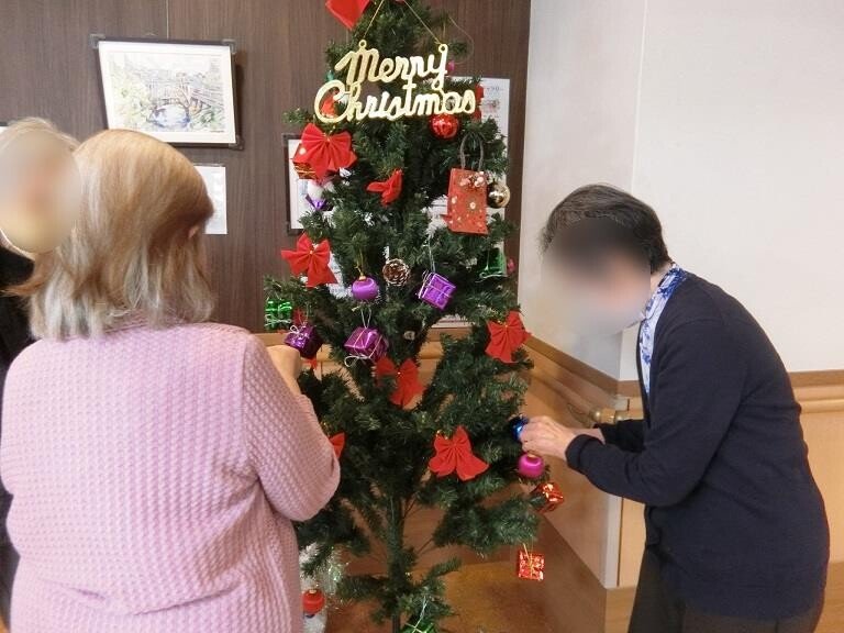 12月は職員とご入居者様と共同でクリスマスツリーの飾りつけをしました。