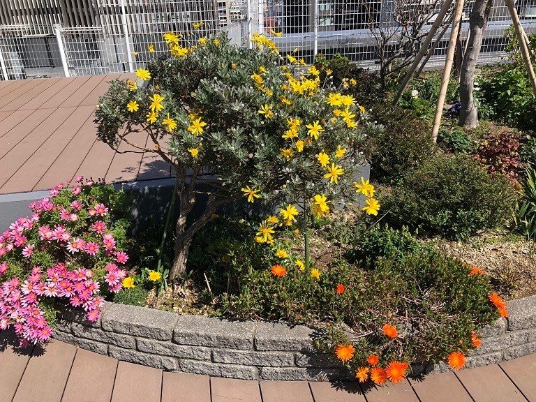 屋上庭園の花々も春めいていました。