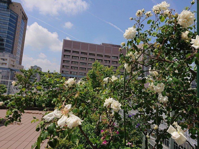 気温の上昇に伴い、屋上の花々も綺麗に咲いています。