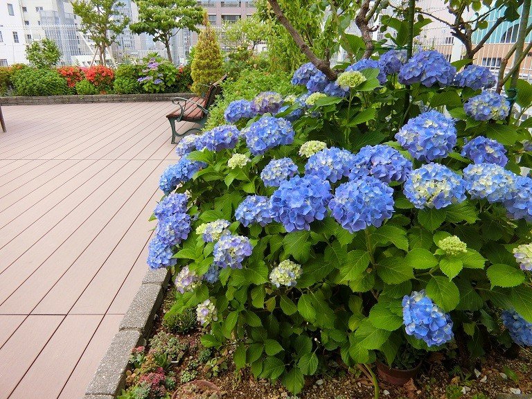 6月には屋上庭園のアジサイが見事に咲きました。
