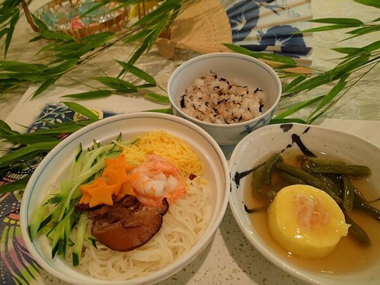 七夕の星にちなんで、そうめんには星形に繰り抜いたニンジンを添えま
