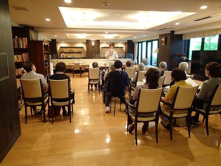 さくらカフェを開催し、アラベラの家の理学療法士による身体機能