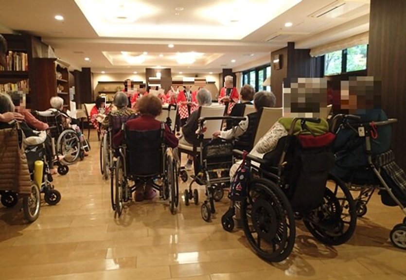 三味線の音色に合わせて、ご利用者様の皆様は歌っておられました。