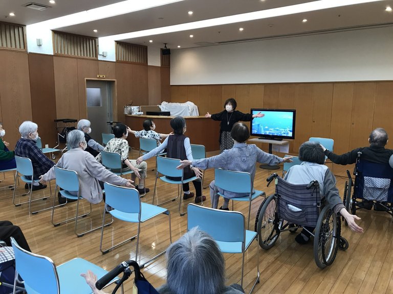 毎月、外部から歌唱指導士にお越しいただき、館内の方に無料で「歌って体を動かそう」と題したイベントを定期開催しております。