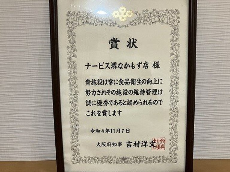 11月28日、ナービス堺なかもずでは、『食品衛生向上』について大阪府より表彰いただきました!