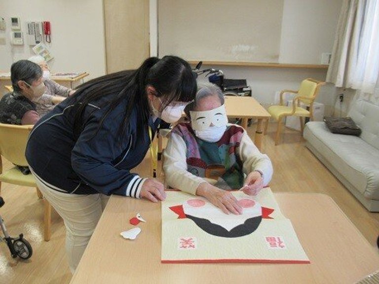 昔懐かしの『福笑い』『けん玉』『ダルマ落とし』などお楽しみいただきました。『けん玉なんていつ以来やろ?』『けっこう難しいわ』など、ワイワイとお話をされながら楽しんでおられるご様子でした。
