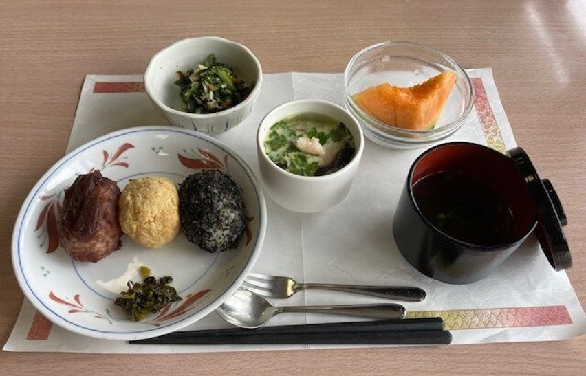 お彼岸の昼食。お盆の牡丹餅とは絶妙に違う「おはぎ」が提供されました。暑かった日もいつの間にかなくなり、秋の訪れを食と共に感じます。
