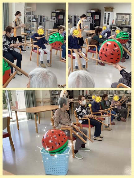 滑る滑る!落とさず大きなボールを隣の人に渡せるか!?