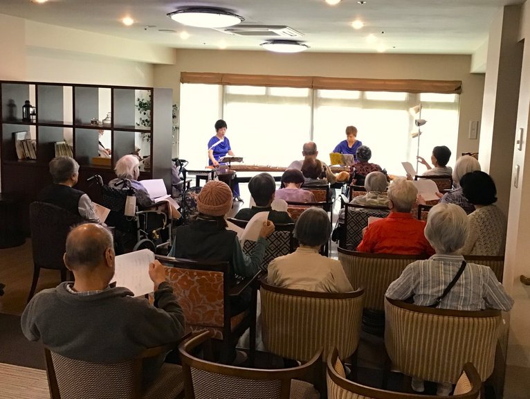 さくらさくら・荒城の月・上を向いて歩こう・春の手琴など全7曲の澄んだ琴の音に耳を傾けたり、曲に合わせて歌を口ずさんだりと、安らぎのひと時を過ごされました。