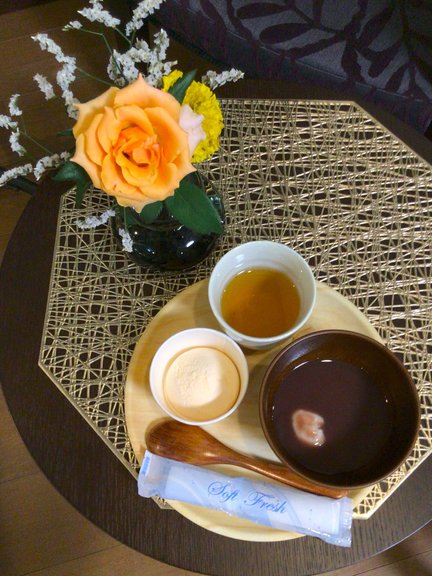 この日のメニューは「おしるこ&バニラアイス」温かい物と冷たい物という対照的な組み合わせに、入居者様は驚きつつも交互に楽しんで召し上がられました。