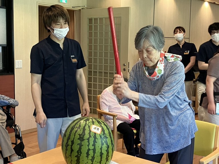 重さはなんと、14.4㎏。スイカ割りを楽しんだ後は、美味しくいただきました。