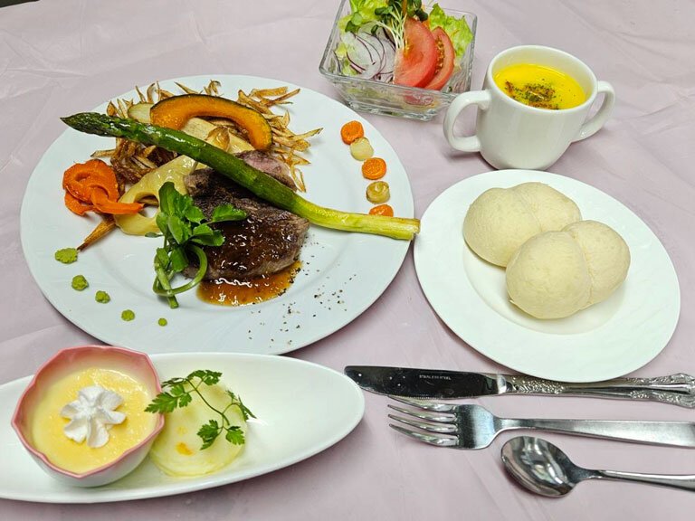 今月のメニューは、道産和牛を贅沢に使ったステーキをメインに、ホテルのディナーのような特別感あるメニューを提供いたしました。