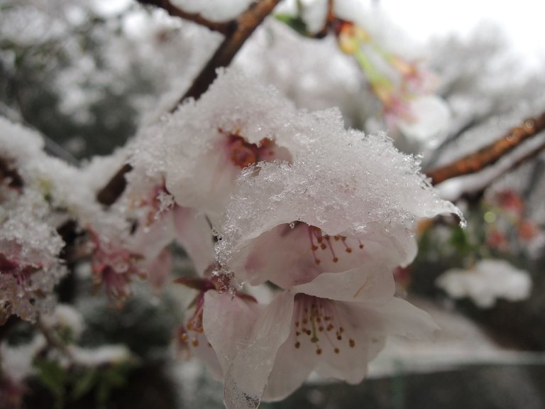 現在ホームの周辺では季節外れの雪が降っており、桜に積もった雪が綺麗です☆