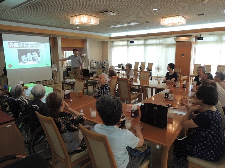 当時の皇太子さまと美智子さまのご成婚パレードや伊勢湾台風など、実際に見たり体験したご入居者の方のお話しもあり、懐かしみながら楽しんで頂きました♪